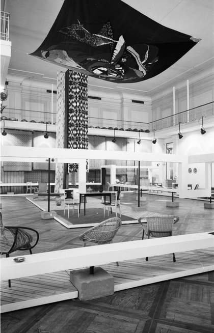 III Ogólnopolska Wystawa Architektury Wnętrz (3rd State Exhibition of Interior Design), showing Butterfly 1956–7 hanging from the ceiling of the National Theatre in Warsaw. Photo Archives of Museum of the Academy of Fine Arts in Warsaw. (1957)