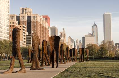 Abakanowicz completes Agora for Grant Park, Chicago. Begun in 2003, this is her largest – and last – permanent public project: 106 headless figures, each nine-feet tall and cast in iron.