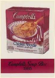 In the spirit of pop art, artist Michel Majerus, features a box of chips in Fries 2001 along with logos and mass produced products…but adopts this imagery to celebrate youthful subcultures that use images of consumerism as badges of identity, rather than subverting consumer culture, as the pop artists did. Damien Hirst was also inspired by packaging in his series of food-related prints The Last Supper. For these he used packaging usually associated with medicines, but replaced the name of the drug with the name of a food traditional to working class British café culture, for example ‘corned beef’, ‘sausages’, or ‘beans’ and ‘chips’ transforming the food into a brand by the addition of the insignia ®, TM or decorative typescript.
