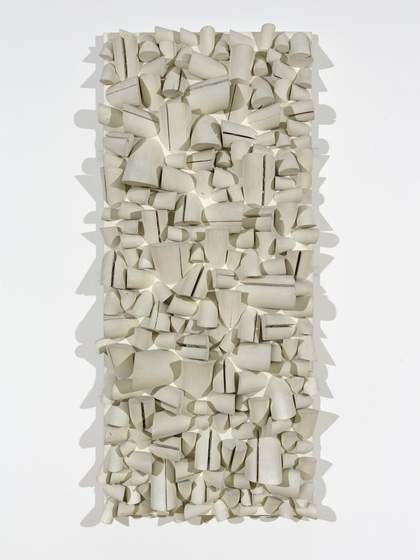 The strong abstract forms and textures in these artworks by Mary Martin and Sergio de Camargo are created by shadows. The sculptural reliefs are made from white plaster, but the light shining on them creates shadow shapes, and a rhythmic pattern of lights and darks.