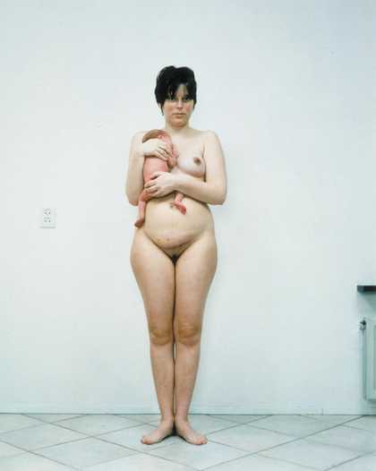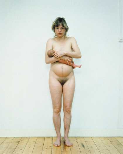 Rineke Dijkstra turns the all-seeing lens of her camera onto very new mothers. Her series of portraits of women was made shortly after the mothers gave birth. We see signs of their recent ordeal – the medical pants and sanitary towel, a trickle of blood, a caesarean scar. The women appear proud and happy. They hold their new babies turned away from the camera, protectively pressed against their bodies. Dijkstra is interested in photographing people at a time when they do not have everything under control. She uses the formally posed, full-length portrait to try to reveal something intimate. There are emotions behind the mask of the face and the body’s pose. The bright lights and details the camera picks up makes the women as vulnerable as the tiny babies they hold.