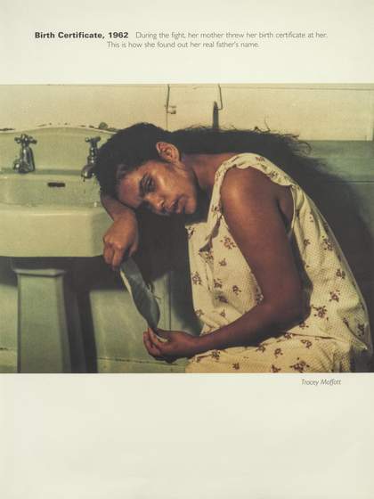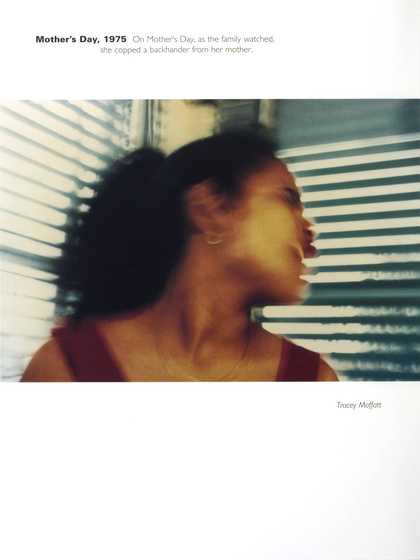 Sadly not all mother and child relationships involve tenderness or admiration. Tracey Moffatt’s Scarred for Life series explores abusive relationships. She references memories from her own childhood. The format of the works are like photo spreads from the American magazine Life. The photographs are haunting. They either show or suggest violence or vulnerability. They have captions that hint at the traumatic stories behind the pictures. Moffatt has commented: