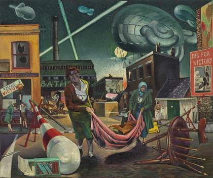 During the Second World War, Graham Sutherland was one of many artists commissioned to record the devastation caused by bombing raids. His paintings are not realistic depictions of hat he saw. Instead what he felt when he saw the bombed out buildings is clearly expressed in the colours and expressive marks he uses.