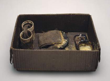 Felt, fat, tin, metal and cardboard
