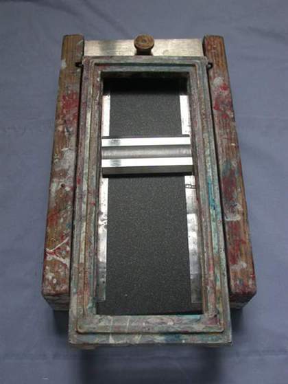 The following paints (tab.1) were drawn down onto three different substrates including: Teflon coated stainless steel sheets (Corus Firsteel Coated Strips, Walsall, UK); strips of a 10oz acrylic primed cotton duck canvas (Russell and Chapple, London); and cleaned glass slides (Agar Scientific, UK) to a dry thickness of approximately 80μm with a Sheen instruments adjustable film caster (fig.1) (Sheen Instruments, Kingston-upon-Thames, UK). At the time of experimentation, each sample had at least one months drying in ambient conditions, protected from dust, and it is noted therefore that the samples would probably not have been fully cured at this stage.8 A selection of the samples were thermally aged for a period of twenty four hours at 60°C in a Gallenkamp Vacuum oven.