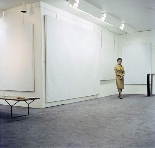 The Japanese artist Yayoi Kusama (born 1929) shares Boetti’s restless quest for answers in the world around her. As Ali Smith writes, Kusama is an artist who is ‘fascinated by the attractions and horrors of multiplicity and individuality in the universe’. Her wish to measure this unbounded space has taken many forms, and you get a sense of this in the photograph on our cover of Kusama in her New York studio in 1963. She looks out from behind one of her Infinity Net paintings and down on to what became part of her Aggregation: One Thousand Boats installation, works to be included in Tate Modern’s Kusama exhibition. Through her painting, sculpture, performance, poetry and fiction, she has continually, as she puts it, ‘examined the single dot that was my own life’. And along the way she has come into contact with diverse and numerous art groups and artists with whom she has exhibited, from Donald Judd (who apparently helped her to stuff the innards of the rowboat) to Group Zero and Andy Warhol, although her work has remained singularly distinctive.