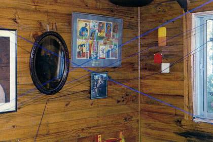 Cecilia Vicuña’s El Hilo Azul (The Blue Thread), a site-specific installation woven in the artist’s bedroom in Concón, Chile, 1972