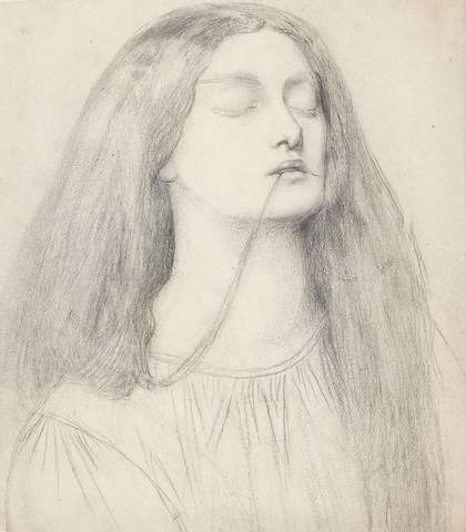 As character models for paintings by Dante Gabriel and the other Pre-Raphaelite artists, such as John Everett Millais, William Holman Hunt and Edward Burne-Jones, Christina and Siddal lived fully and richly within a space of creative expression, ‘performing’ scenes from literature or the Bible (notably, Christina as the Virgin Mary, Siddal as Viola from Twelfth Night and, most famously, as Ophelia), while also moving between painting and writing. I wonder if the different positions that they occupied – model, painter, writer – were ever brought to meet? Did one affect the other? It seems possible that the experiences they had while art modelling might have been generative. But perhaps my imagination is getting the better of me. Maybe the limits of gender, of existing as a woman – even within a revolutionary, artistic community such as the Pre-Raphaelites – were still strongly, forbiddingly, in place. It was a brotherhood, after all, even if women were, informally at least, a part of it. I’ve thought that, since Dante Gabriel used the same model for many months or even years, his relationship with her might have been transformed, made deeper, unlike if he’d used a new model for each drawing or painting. To share this kind of experience with another is intimate; over an extended period, more intimate still. A relationship built from the blurring of art and life.