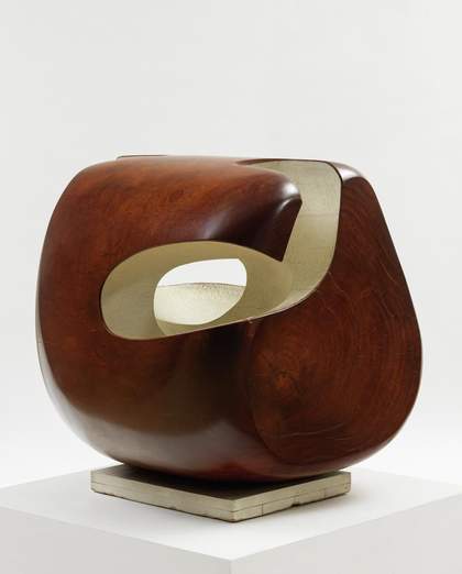 When war broke out, Hepworth and her children moved to St Ives in Cornwall. Life in Cornwall was very different from that in London, and during the war years a different Hepworth emerged. She developed a much more individual style which opens up the form, exploring the interiors of round or pointed oval shapes with strings and coloured paint. She worked with a much lighter touch, using wood in preference to stone.